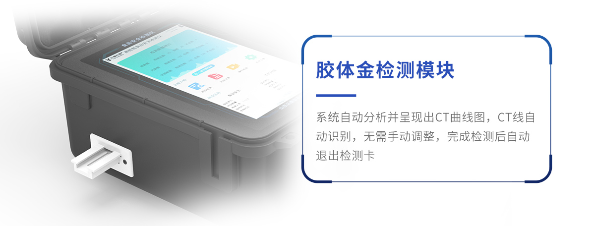軌道式自動傳輸掃描方式,可實時顯示金標卡實時圖像,系統自動分析并呈現出CT曲線圖,CT線自動識別,無需手動調整,完成檢測后自動退出檢測卡。